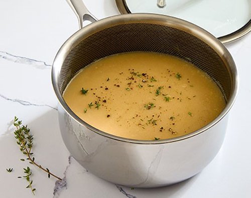 Low-Fat GravyVegan, low-fat, dairy-free, gravy made with plant-based ingredients and seasoned with thyme.Recipe Ingredients:2 tablespoons almond flour2 tablespoons nutritional food yeast 2 tablespoons low-sodium soy sauce ½ teaspoon onion powder 1 teaspoon lemon zest ½ tablespoon corn starch 2 cups plant-based milk of almond, rice, or oat drink 2 tablespoons fresh thyme, chopped Recipe Instructions:In a medium sauce pan, add two tablespoons of flour. On medium to high heat, lightly brown the flour, stirring constantly.In a food processor, add all the remaining ingredients and the browned flour from the saucepan. Process for 1-2 minutes or until well combined.
